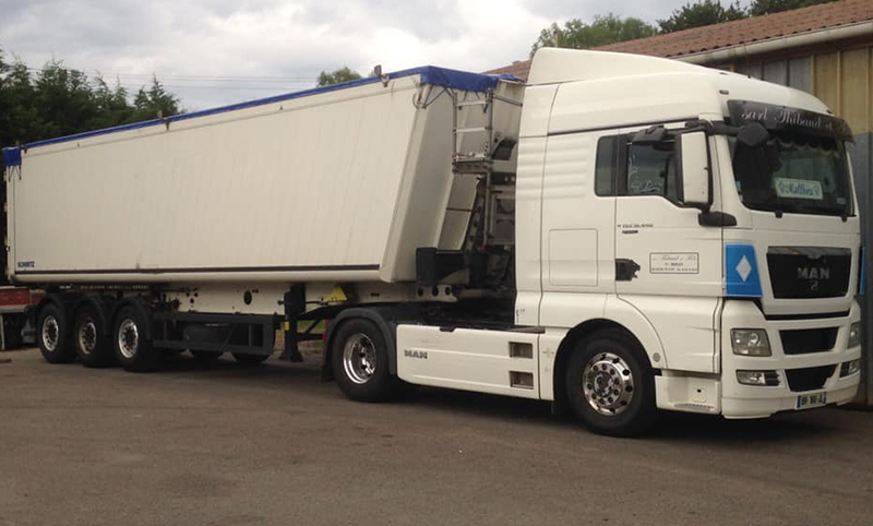 Pour transporter des grains, des céréales, du maïs ou du blé, les Transports THIBAUD & FILS utilisent leur camion benne pour livrer les fermes, les coopératives, etc. Les bennes servent aussi à transporter cailloux, sable, granula, terre, et autres éléments en vrac pour les carrières.
